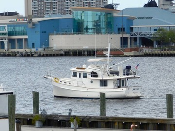 Snowbirds! What has been a trickle is now a steady stream of boats headed back north. This is a very nice Kady Krogen 39. Great winter quarters for a couple. She has pulled into Tidewater for the night.