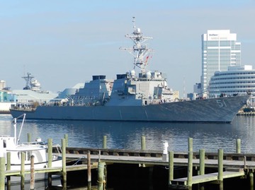 The Arleigh Burke, which was the lead ship of the Arleigh Burke class of guided missle destroyers, and launched at Bath Iron Works in 1991. The keynote address was given by then Secretary of Defense Dick Cheney.