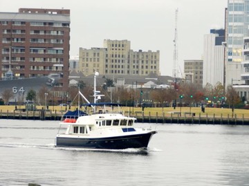 A Prowler powercat slides quickly by. Seems like a great way to travel. Speed with modest power and lots of room.