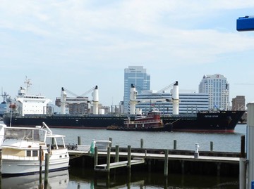 July 16. The 575 feet of the Bulk Carrier "Cetus Star" fills up the window today.
