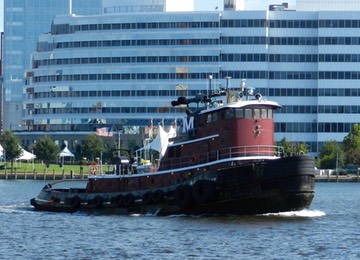 Moran Tug JEAN TURECAMO has to be the tug that all bathtub tugs were patterned after. I smile whenever she goes by. If you look closely she seems to have lips about a third of the way up her bow. Built in 1975, her profile is rapidly being supplanted in the big ports by the twin screw Z-drive tugs.