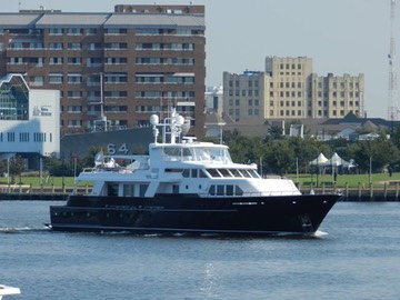 It's a great time of year for yachtspotting as the New England season wraps up and charter motoryachts head south for the next season. Many are stopping here for refits at Ocean Marine or Colonnas before the Carribbean Season begins. On the left is the Westship FEELIN' FREE, on the right the Feadship CASUAL WATER.