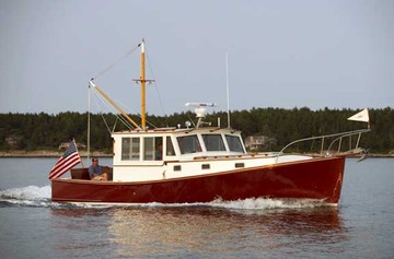 Classic downeast boats give away little to the side decks, resulting in a narrow walkway which requires hanging on to a handrail on the coach roof or cabin side while transiting from the cockpit to the foredeck. This is not a lot of fun as one ages and disconcerting trying to keep children or grandchildren on board. The Europa style combines the aft cockpit of downeast boats, the big flybridge, and side decks with sturdy rails. Side decks are crucial for many older buyers and anyone with a young family.